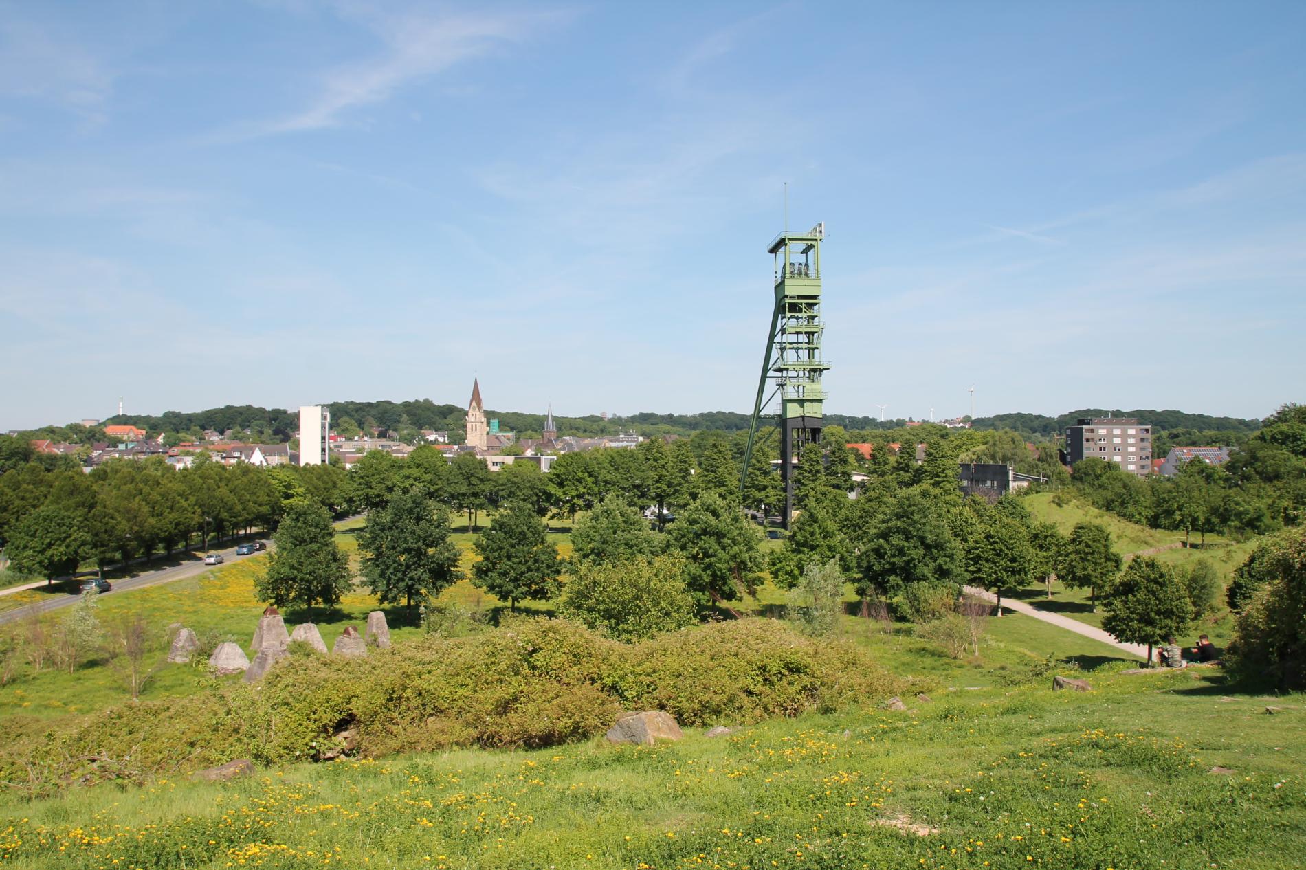 Landschaftliche Highlights mit phänomenalen Aussichtspunkten sind der Deusenberg, die Halde Brockenscheidt mit dem Spurwerkturm in Waltrop und die Halde Schwerin mit der Sonnenuhr, die zusammen das Haldendreieck im Grünzug bilden.