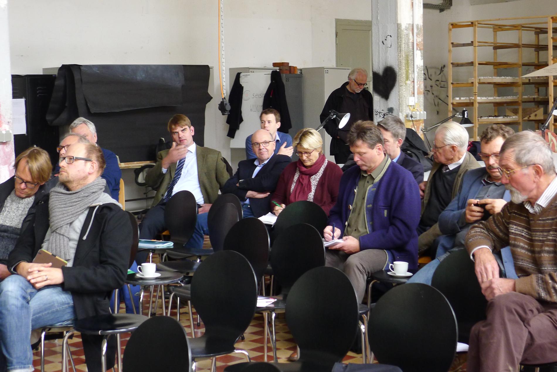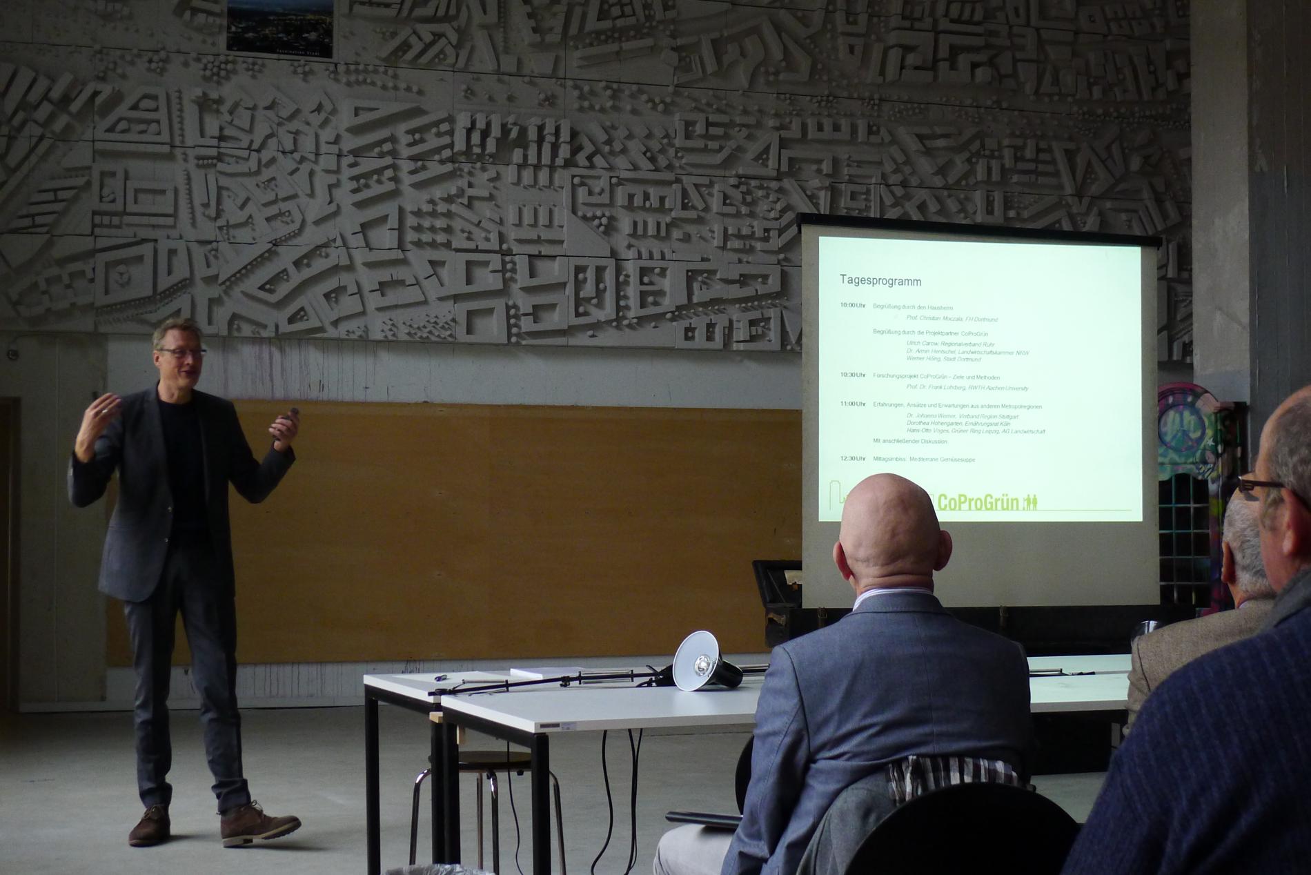 Als Auftakt zum Projekt haben sich am 9.11.2017 ca. 40 Akteure aus dem regionalen Grünzug F zur Auftaktveranstaltung in der Werkhalle des Union-Gewerbehofes in Dortmund getroffen. Die Projektpartner RWTH Aachen, Regionalverband Ruhr und Fachhochschule Südwestfalen sowie ihre Kooperationspartner Landwirtschaftskammer NRW und die Urbanisten e.V. stellten sich und das Vorhaben vor. Dass andere Metropolregionen vor ähnlichen Fragestellungen stehen zeigten Vorträge der Projektpaten aus den Regionen Leipzig, Stuttgart und Köln/Bonn. Abgeschlossen wurde die Veranstaltung mit einer Diskussionsrunde zu den Akteurserwartungen an das Projekt und einem gemeinsamen Mittagessen.