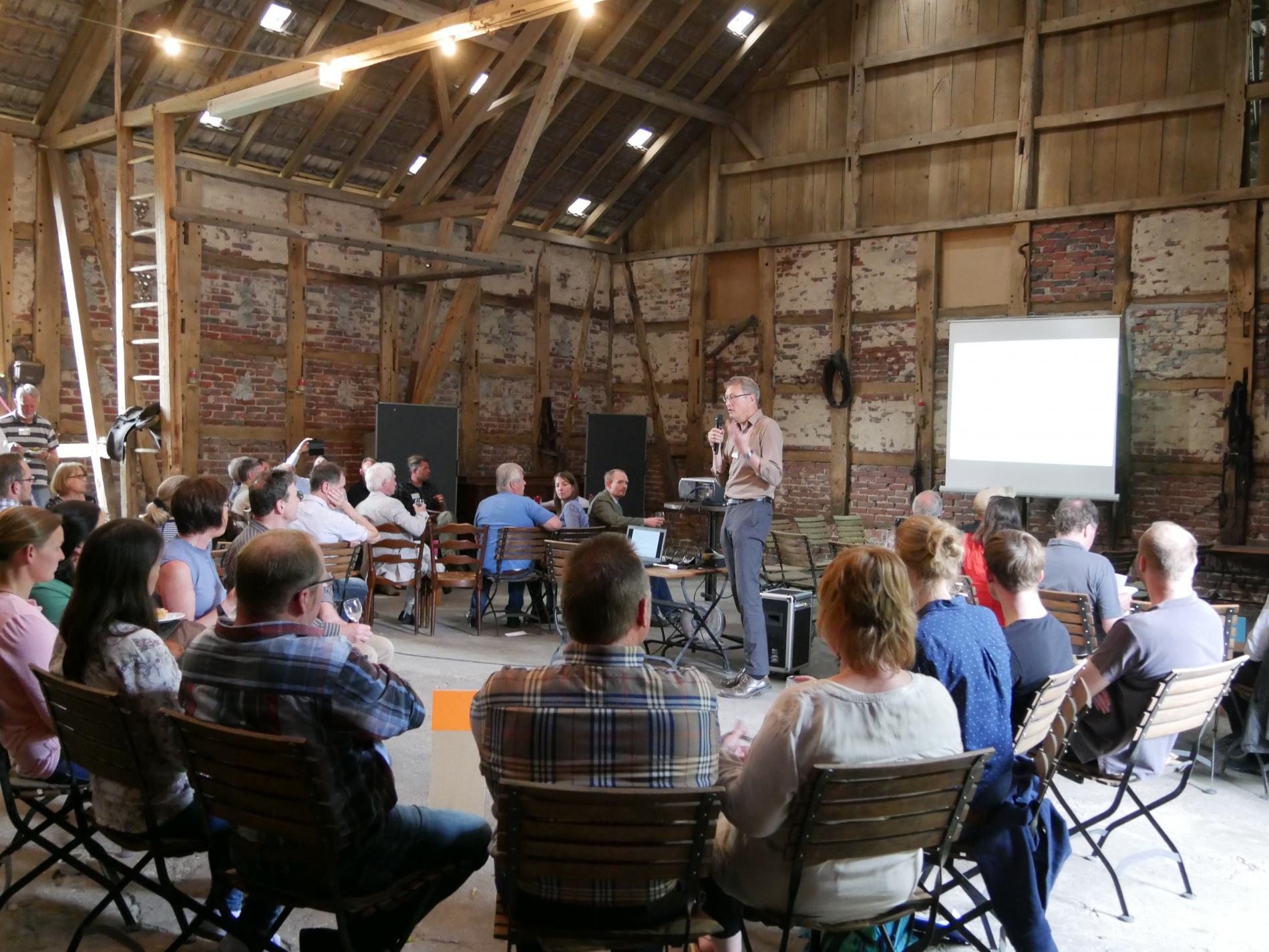 Am 16.05.2017 fand die Ideenbörse in der Scheune des Hofs Niermann in Waltrop statt. In dieser ersten Meilensteinveranstaltung des Forschungsprojektes CoProGrün kamen Akteure aus dem Grünzug F und den angrenzenden Stadtteilen in Castrop-Rauxel, Dortmund, Lünen und Waltrop zusammen und entwickelten erste Projektideen.