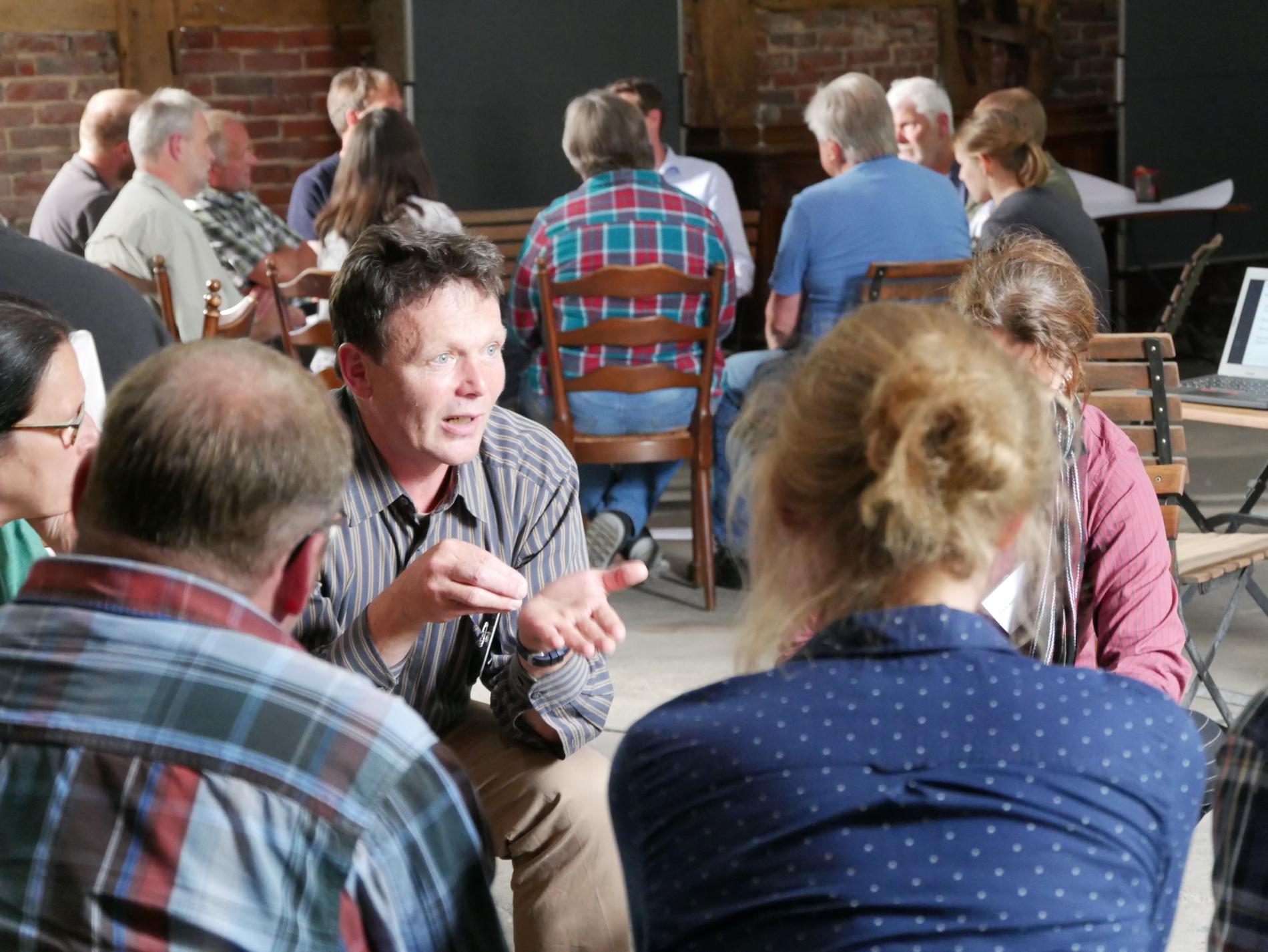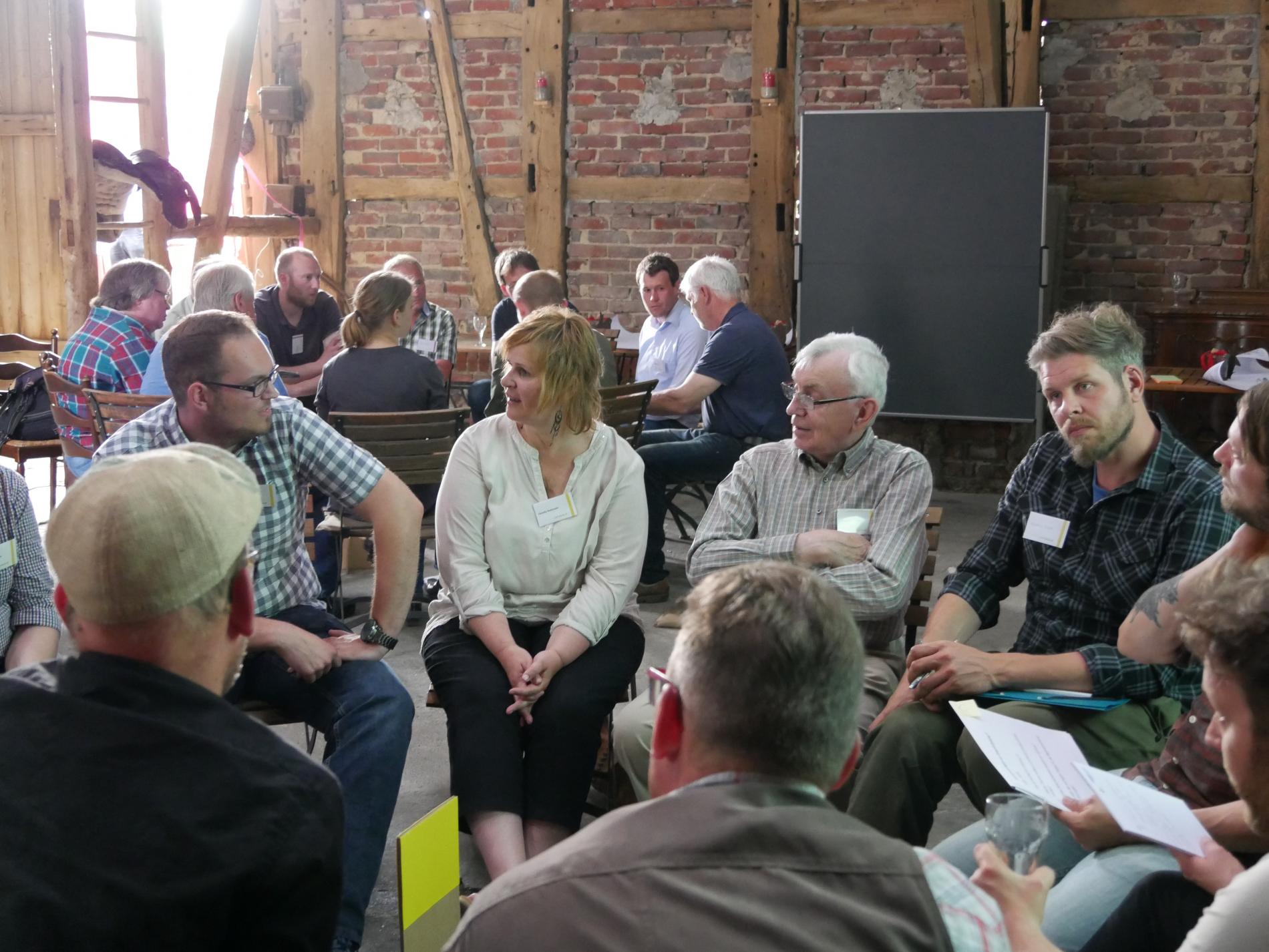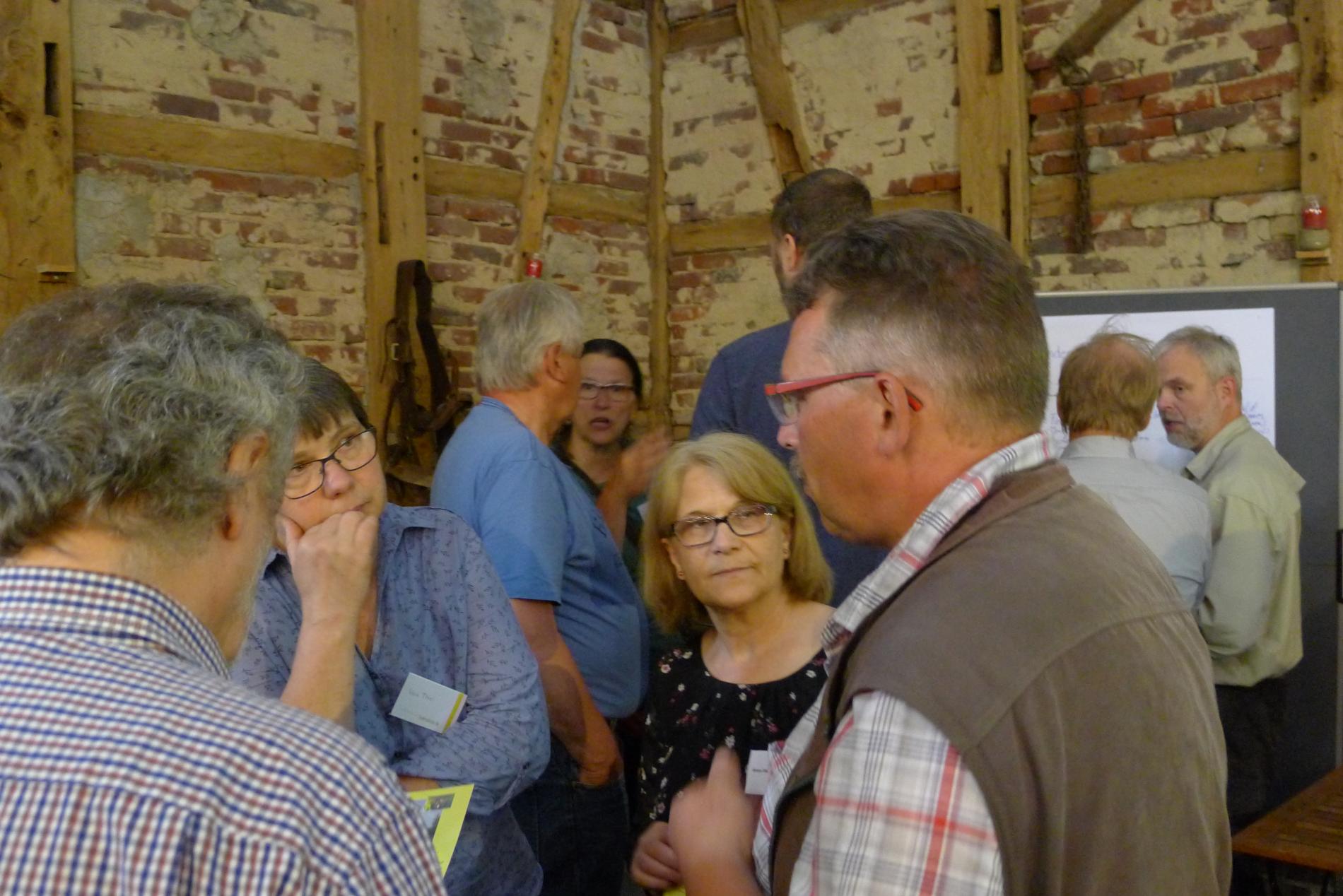 Die Veranstaltung konzentrierte sich auf den Austausch und enthielt neben kurzen Informationsvorträgen durch die Projektpartner zwei interaktive Akteursrunden und großzügige Diskussions- und Erfrischungspausen. Ein bunt gemischtes Teilnehmerfeld aus den Bereichen Landwirtschaft, Naturschutz, Stadtverwaltung, Kommunalpolitik, Umweltbildung sowie Vertreter von Stiftungen und Vereinen nutzte die Veranstaltung, um die verschiedenen Sichtweisen auf den Grünzug F zu erläutern und auszutauschen.