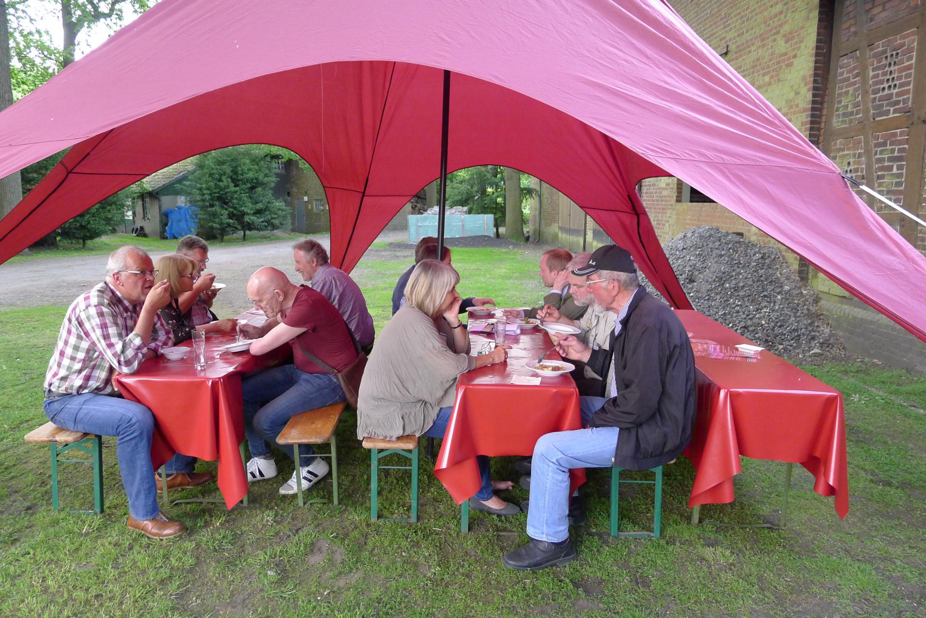 Die Ideenbörse endete mit dem gemeinsamen Abendessen. Bei Spargeleintopf und Erdbeeren vom Hof Niermann wurde so manches Gespräch weitergeführt.